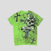 Męska punk T-skjorte med grønn hodeskalle og kors grafikk