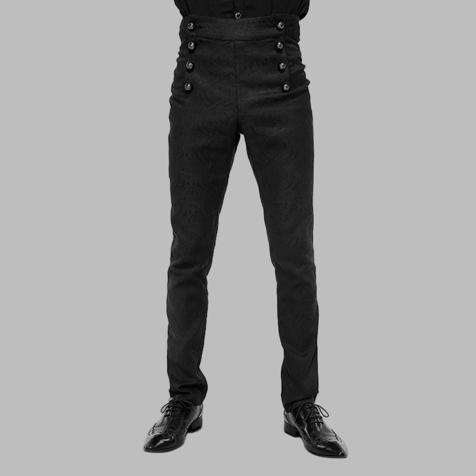 Mørke gotiske herrebukser med høyt liv og knapper, dressmodell