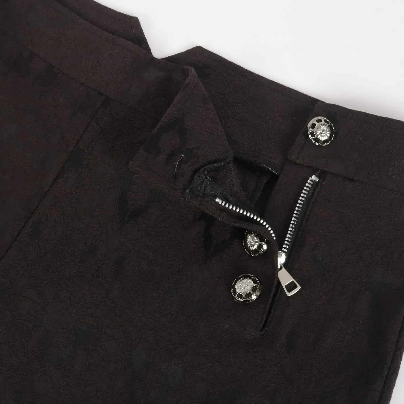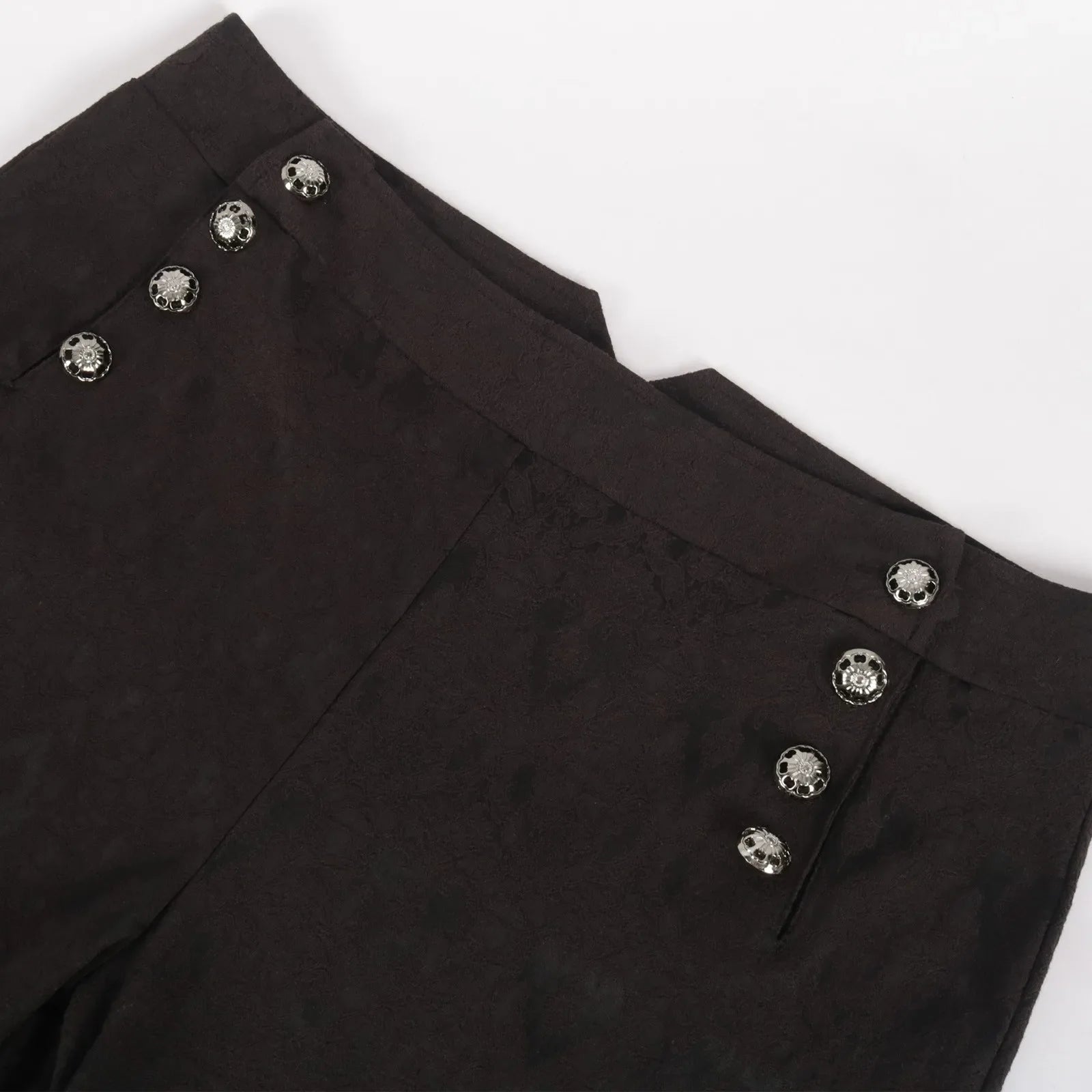 Męskie gotiske svarte dressbukser med høyt liv og knapper