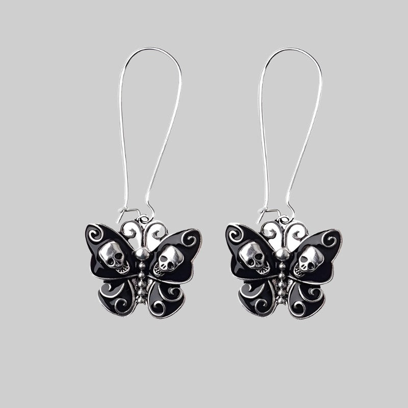 - Dekorasjon: hodeskaller gravert på vingene til en svart sommerfugl, metallornament