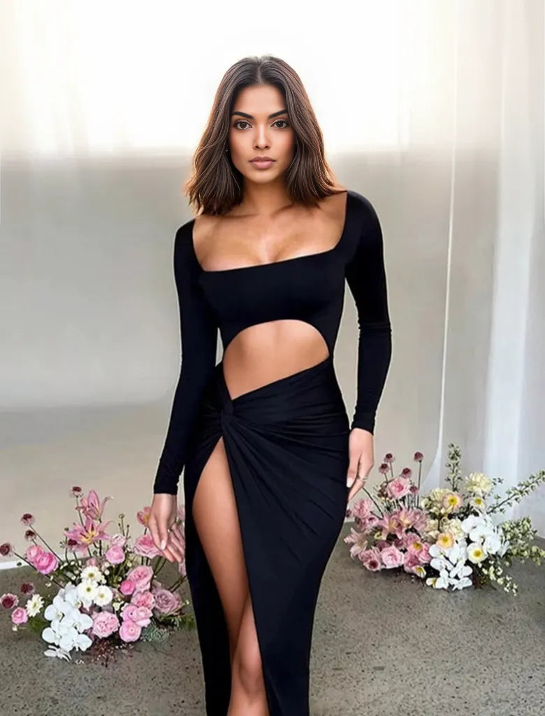 • Seksye Casual-detaljer: Lange ermer og firkantet utringning tilfører et snev av forførelse og sjarm til denne kjolen, og skaper en harmonisk balanse mellom forførelse og eleganse.