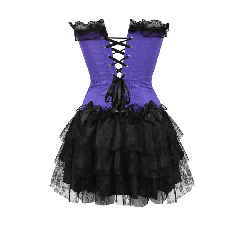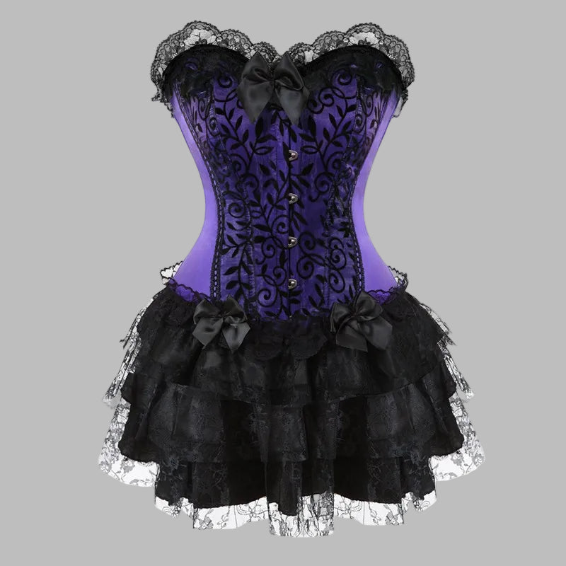 Punk rock-korsett, lilla med blonde og svart skjørt