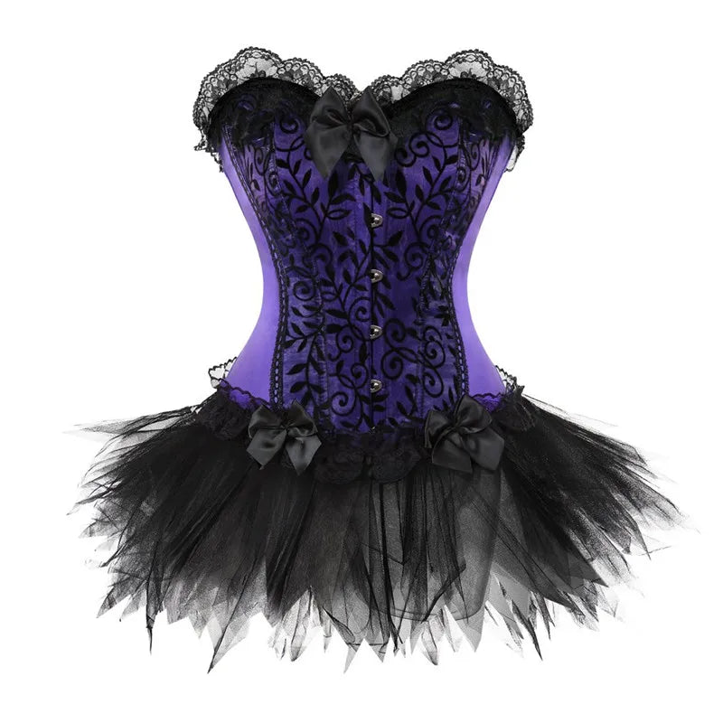 Punk rock korsett lilla med blonde og svart skjørt 6XL