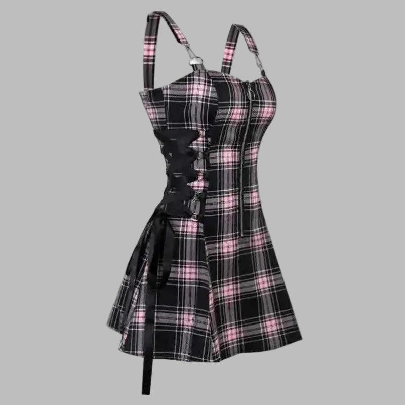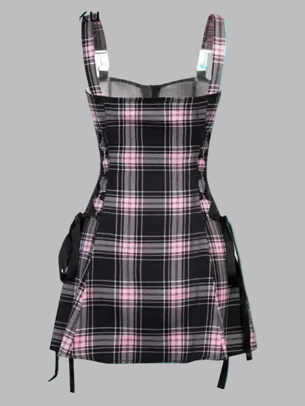 Punk rosa rutete kjole med seler og stropper Se alternativer