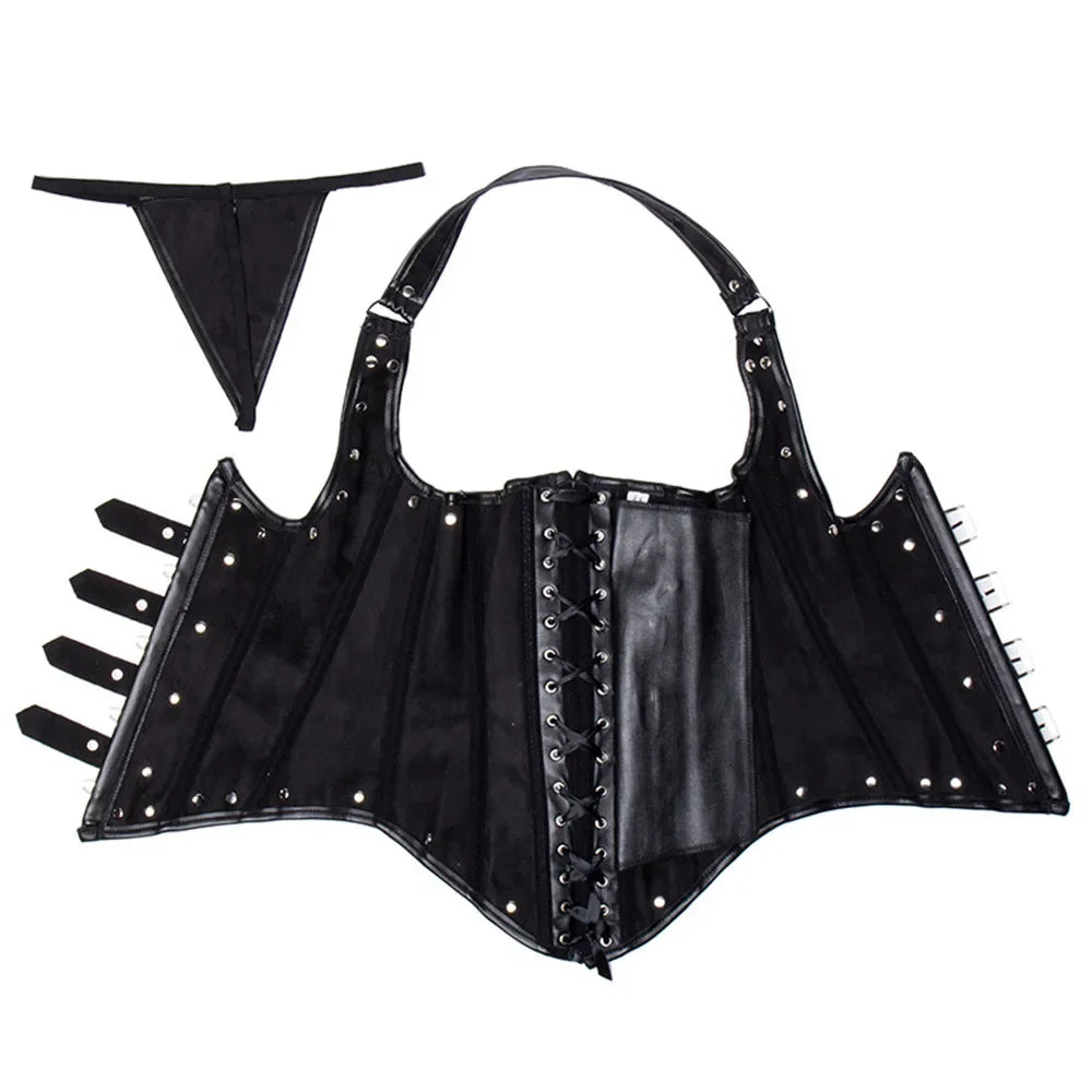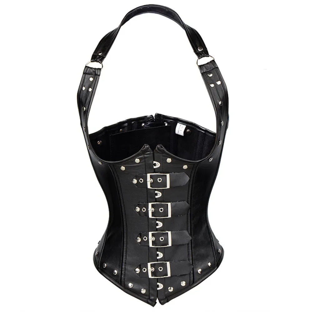 Rød korsett i imitert skinn med spenner – dame, punk rock-stil