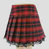 Rødt rutete grunge punk-skjørt med blondekant nederst