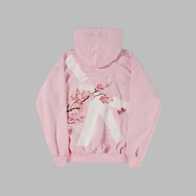 Rosa Jirai Kei-hettegenser med hvite kirsebærblomster XXL