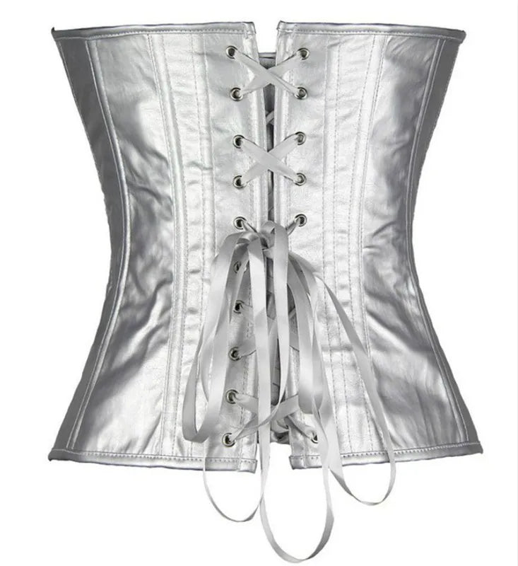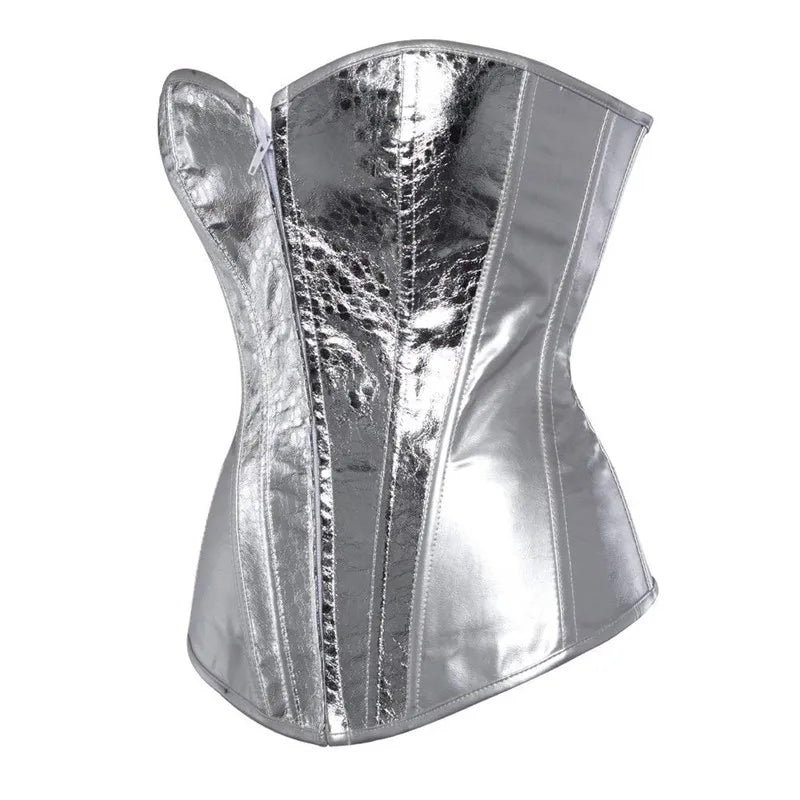 Sølvfarget metal-korsett med slangeeffekt og spiler