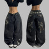 Svarte punk rock-bukser med plantebroderier, grunge-stil