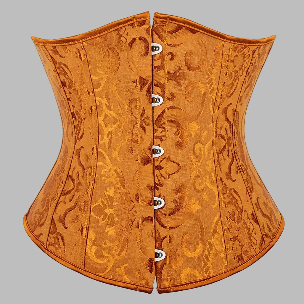 Steampunk korsett i oransje med preget vintage-mønster