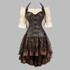 Steampunk skinnkorsett med spenner og blondeskjørt