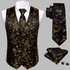 Steampunk-vest sett, svart med gyldne blomstermønstre