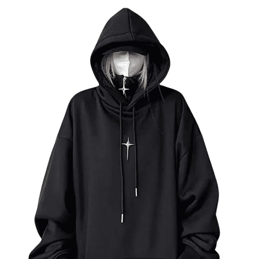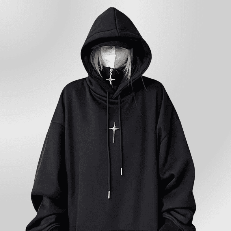 Svart gotisk grunge techwear-hettegenser