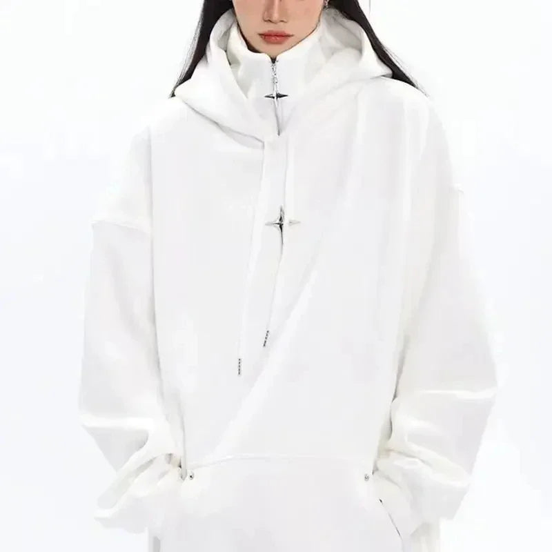 Svart gotisk grunge techwear hettegenser – hvit detalj