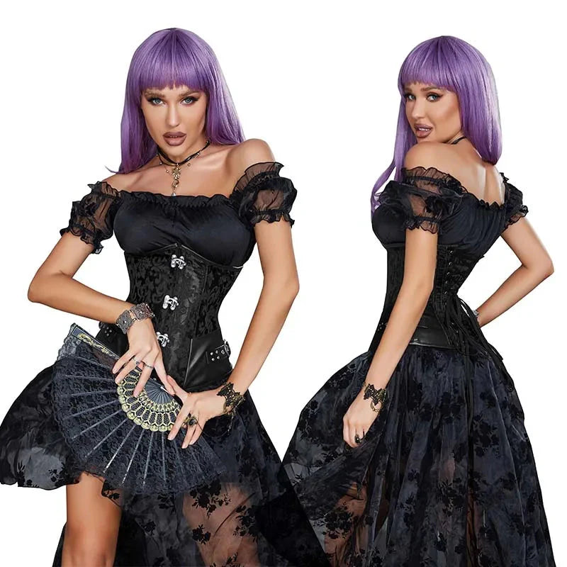 Svart gotisk korsett for kvinner med metallspenner Se alternativer