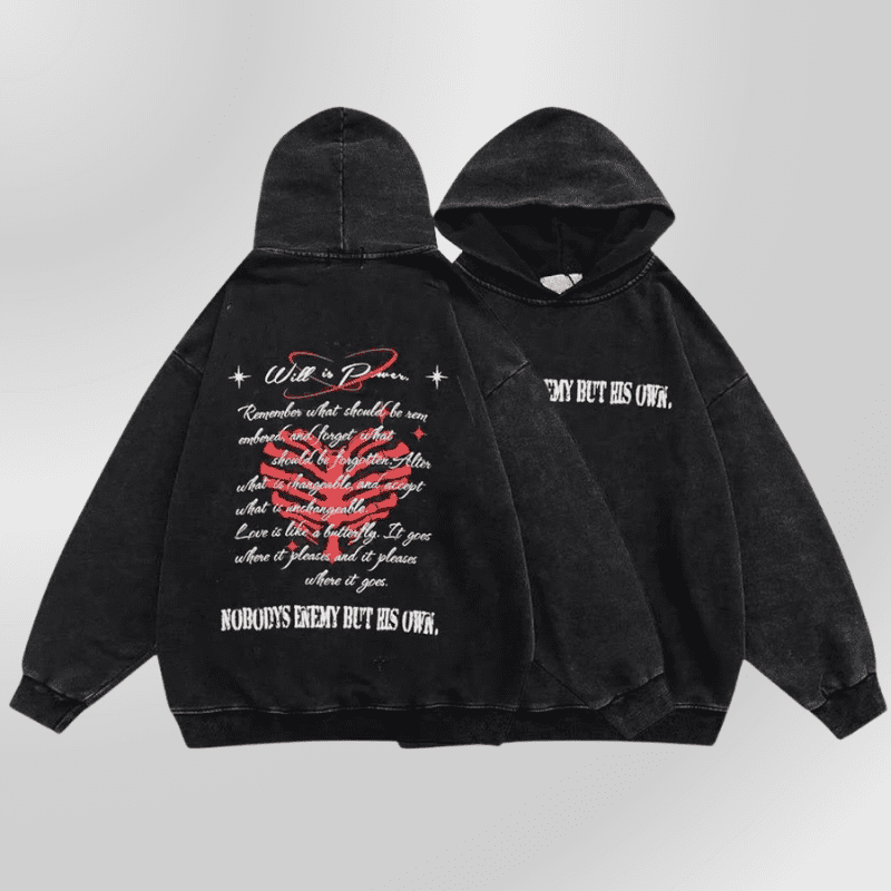 Svart grunge hettegenser i alternativ stil – Letter