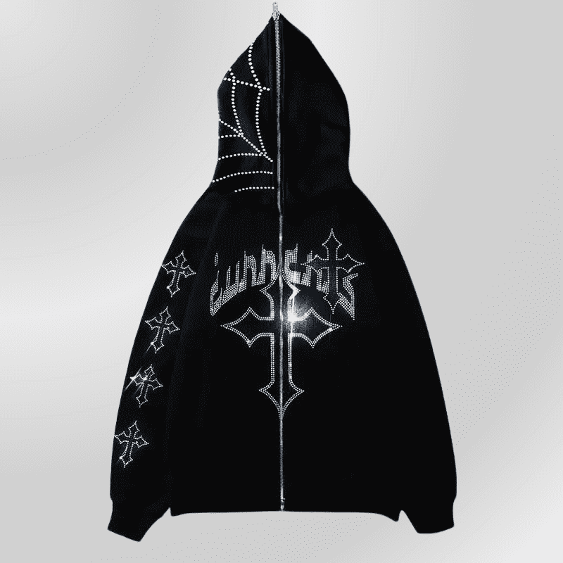 Svart grunge-hettegenser med gotisk kors