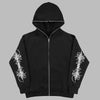 Svart hettejakke i metalstil med hvite torne-mønstre
