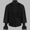 Svart metalskjorte med blondejaboter og blonde mansjetter