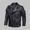 Svart motorsykkeljakke i imitert skinn i rockestil for menn
