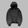 Svart oversized hettegenser med glidelås og flammeprint, darkwear stil