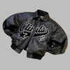 Svart oversized skinnjakke punk metal med hvite trykk