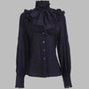 Svart punk goth-bluse med blondekrage og sløyfe