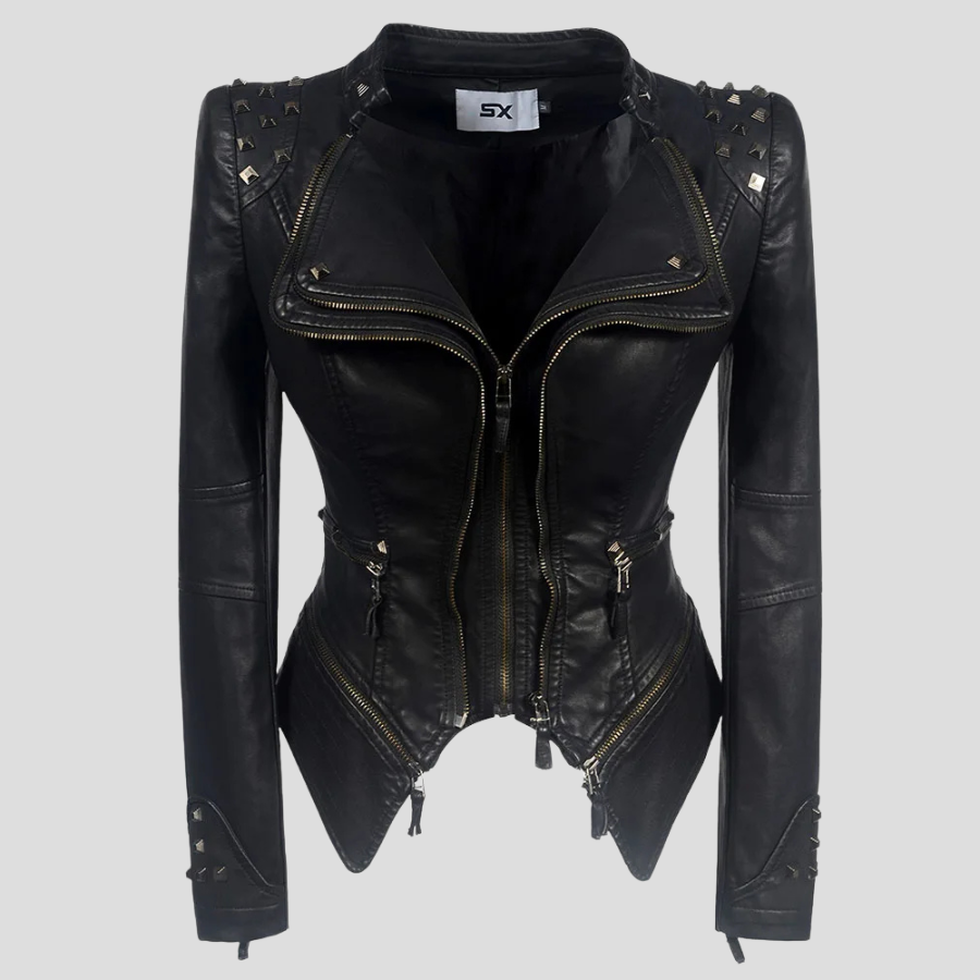 Svart skinnjakke i punk/goth/metal-stil med nagler