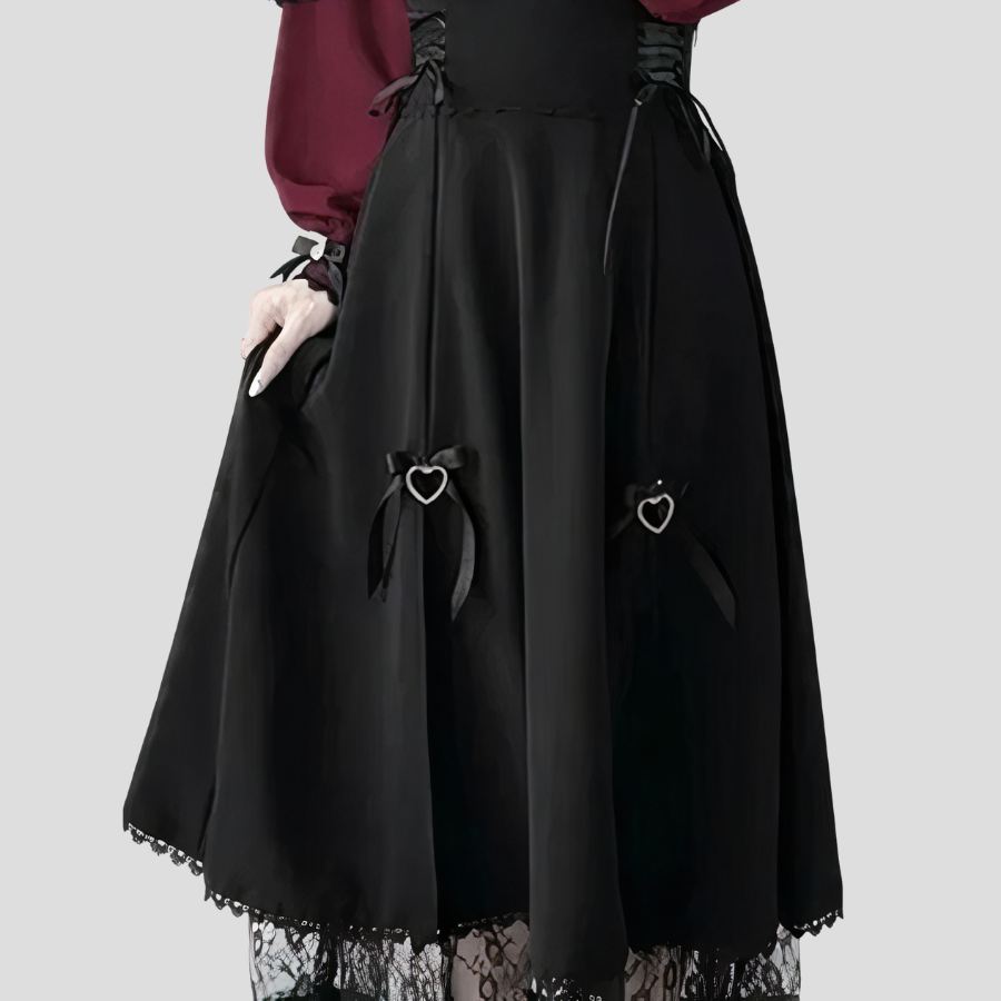 - Dekorative elementer: snøring og små metallhjerter