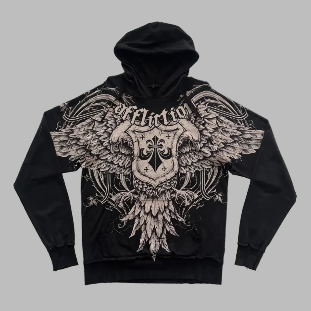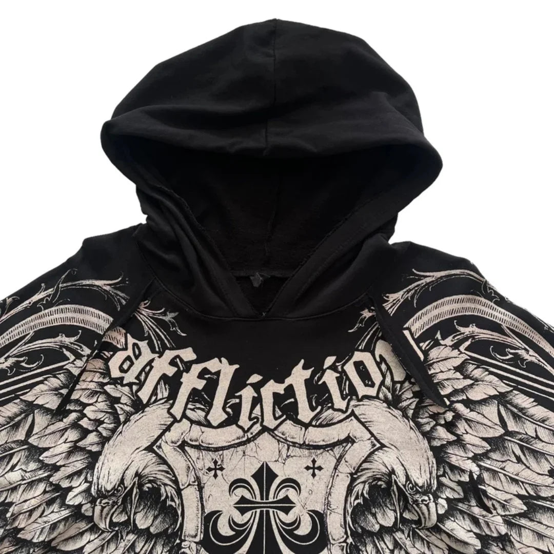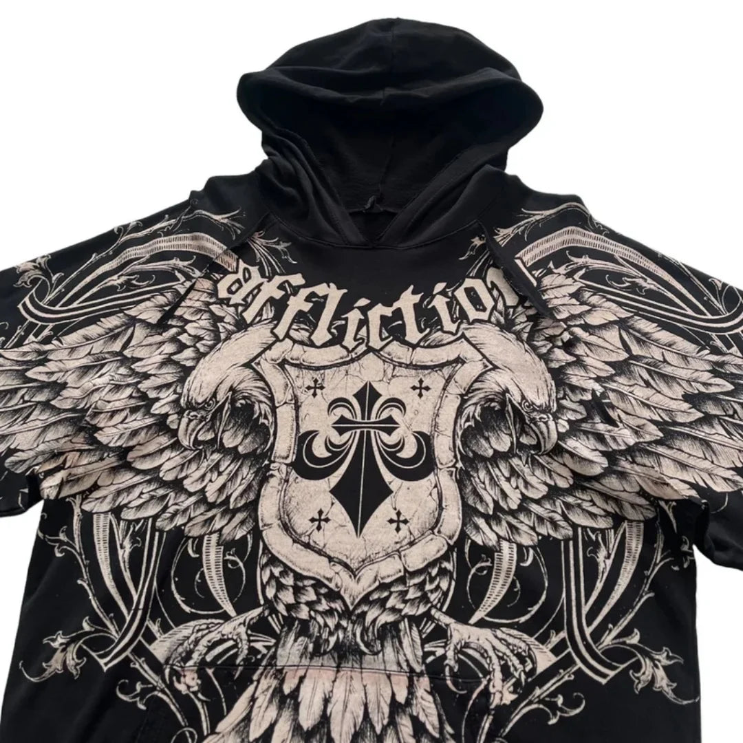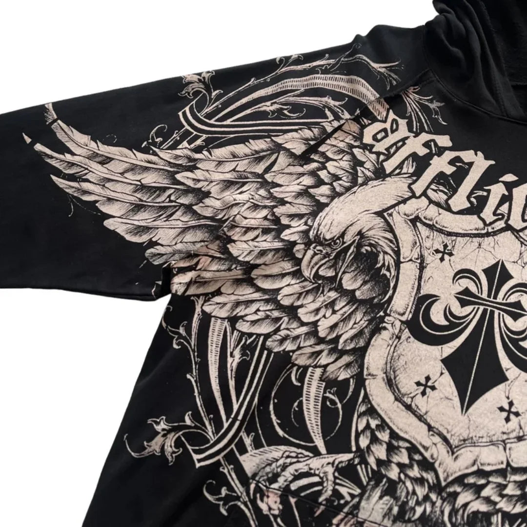 Svart rockhettegenser med ørn og vinger Affliction XXL