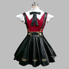 Svart-rød steampunk-skjørt med seler og skinndetaljer