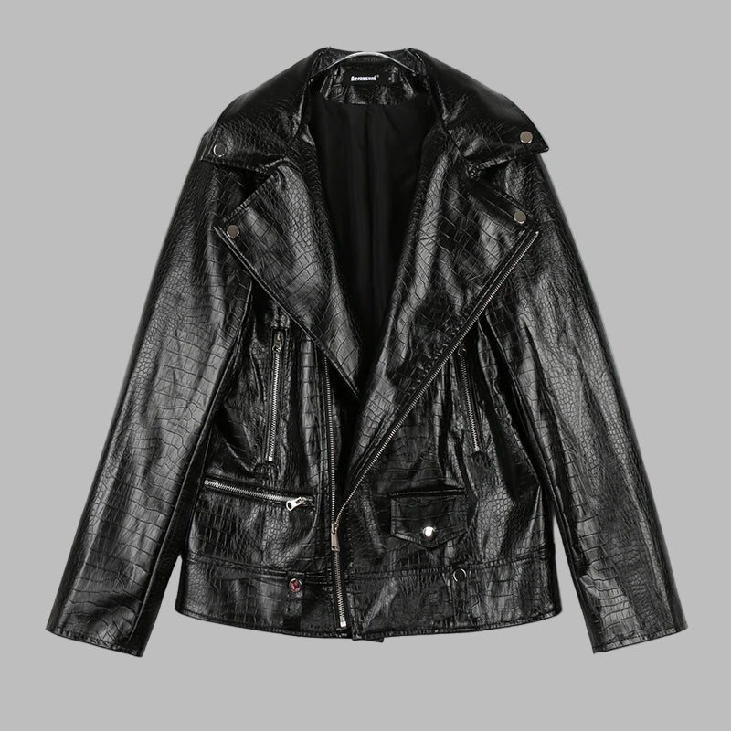Svart skinnjakke i goth- og metalpunk-stil