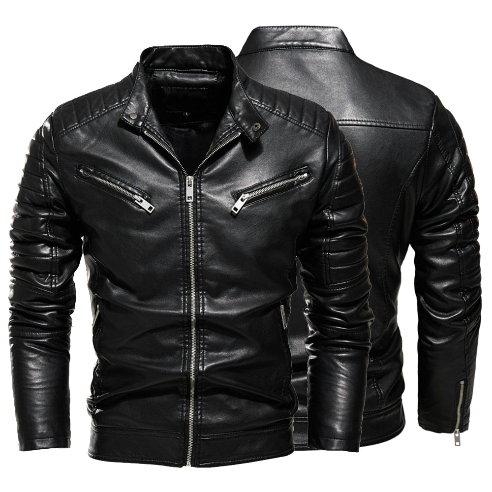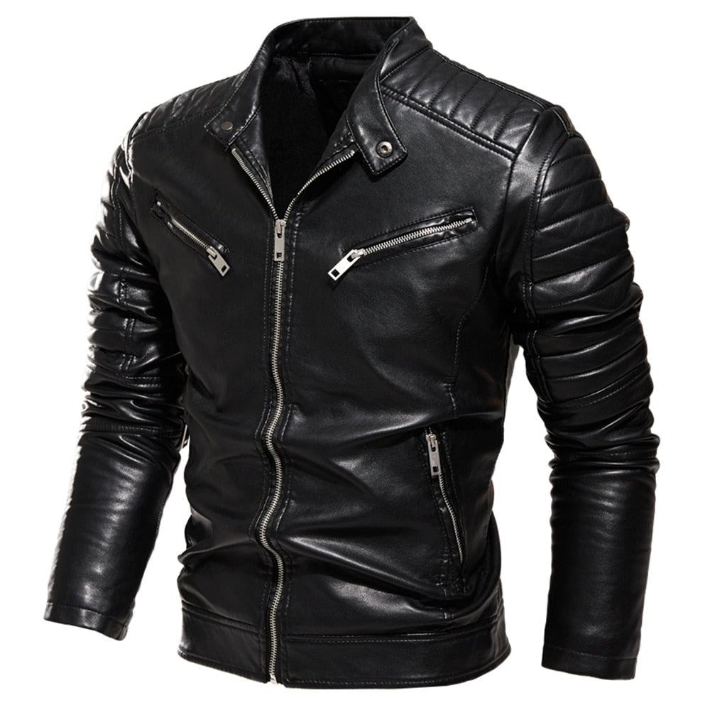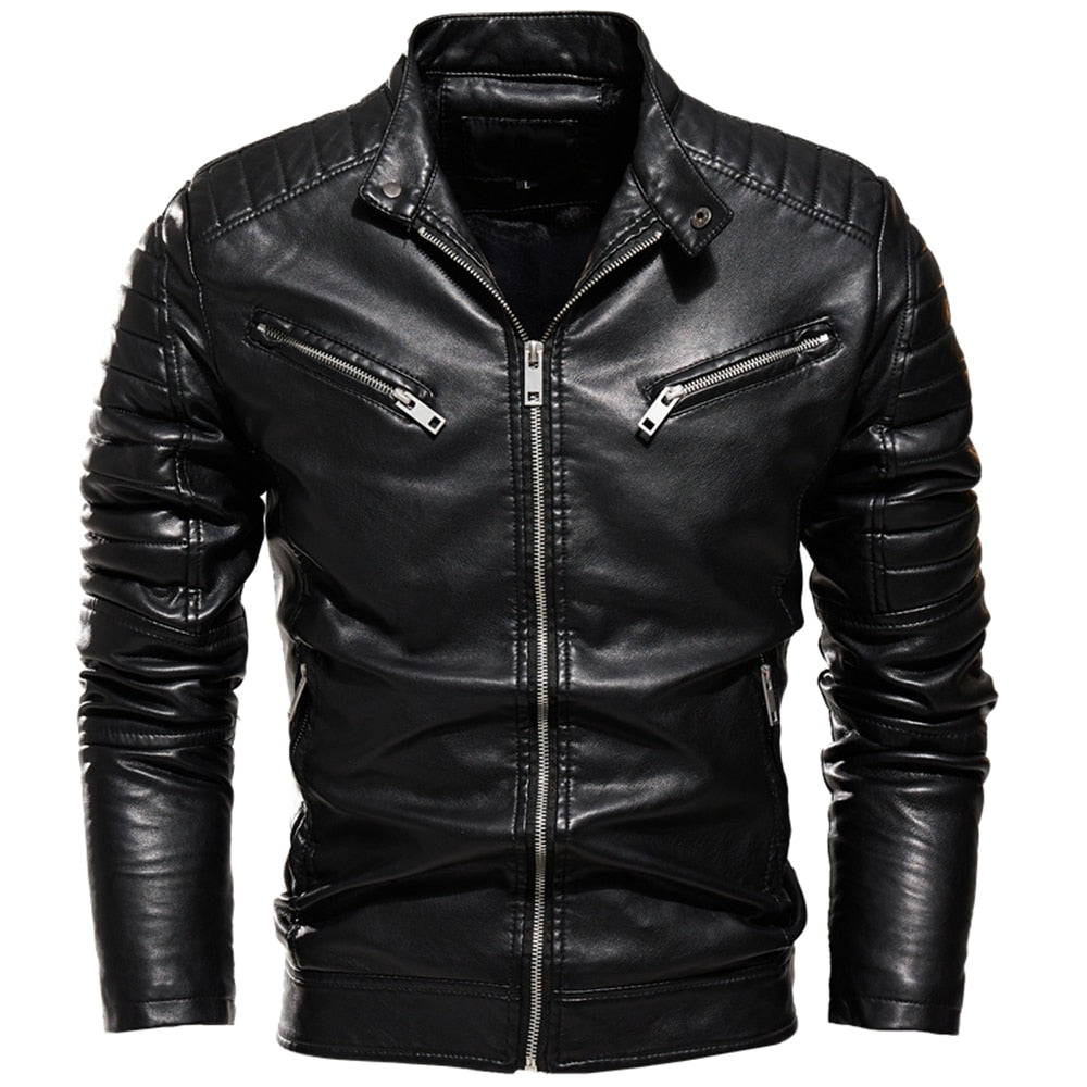Svart og rød skinnjakke til herre