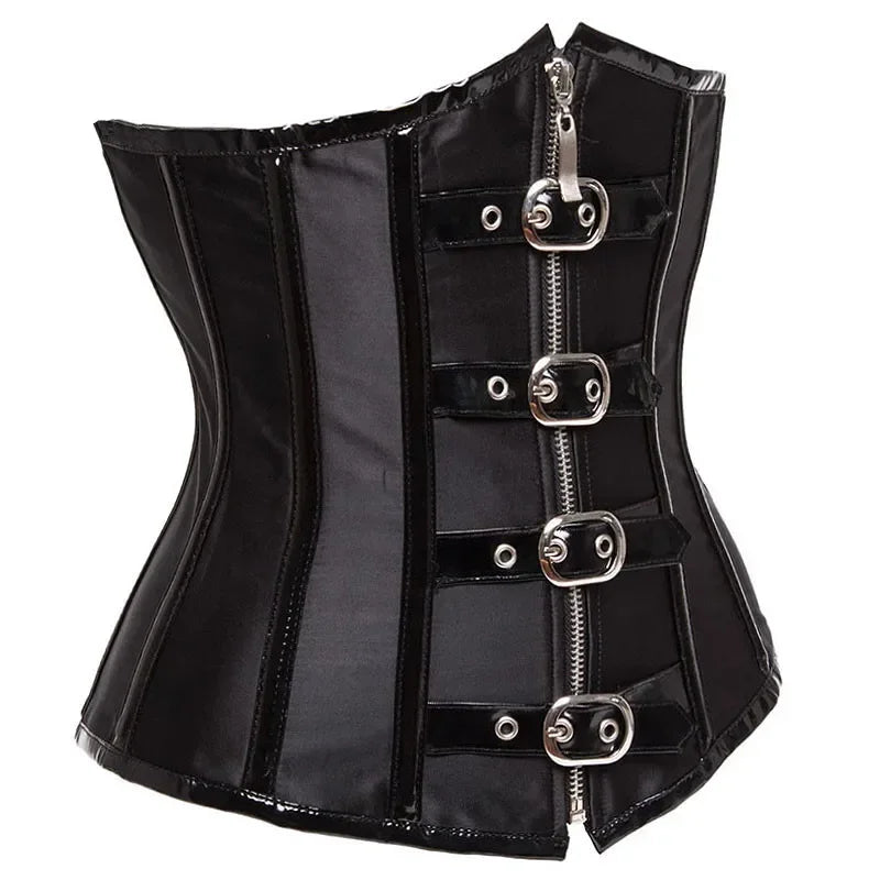 Svart steampunk-korsett med metallspenner – høyt liv, svart