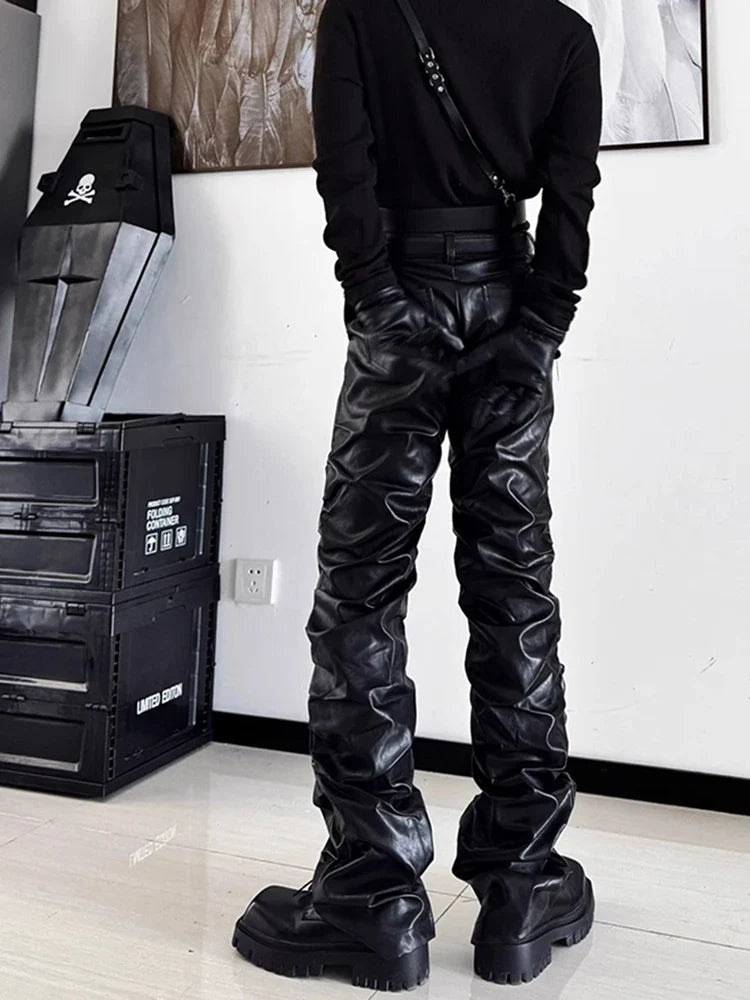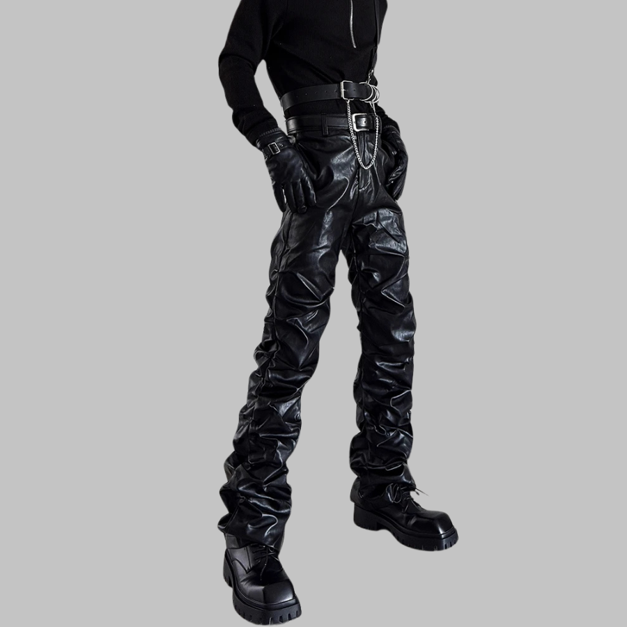 Svarte gotiske bukser i imitert skinn med kjeder og belte