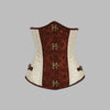 Tosfarget steampunk-korsett i brun og krem med ornamentmønster