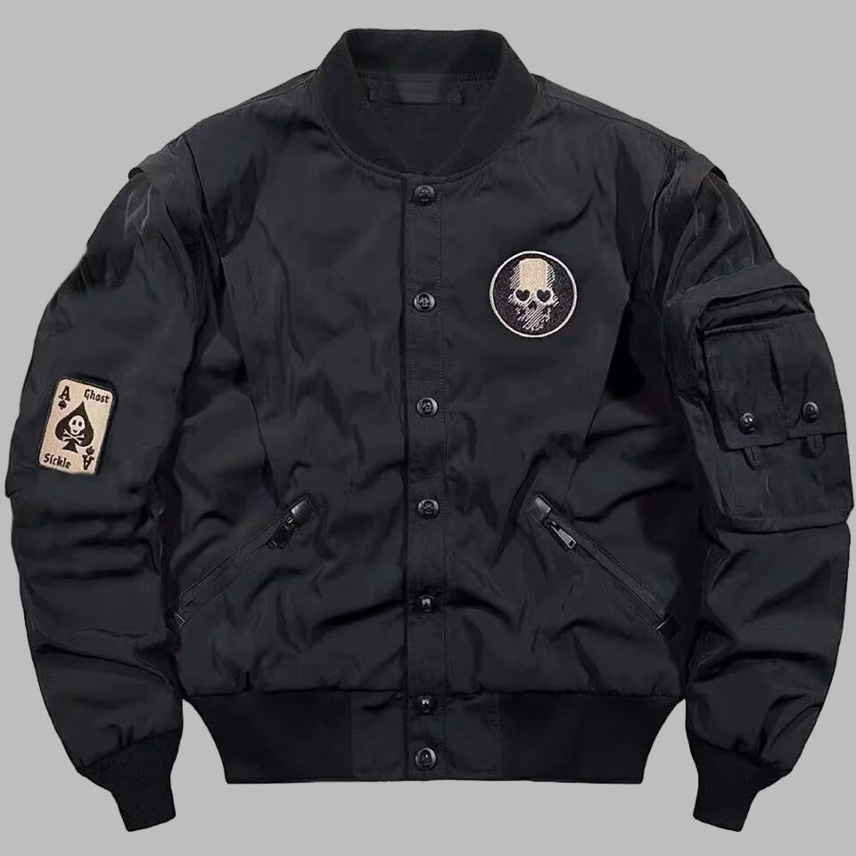 Svart gotisk bomberjakke med metal-hodeskalle, unisex